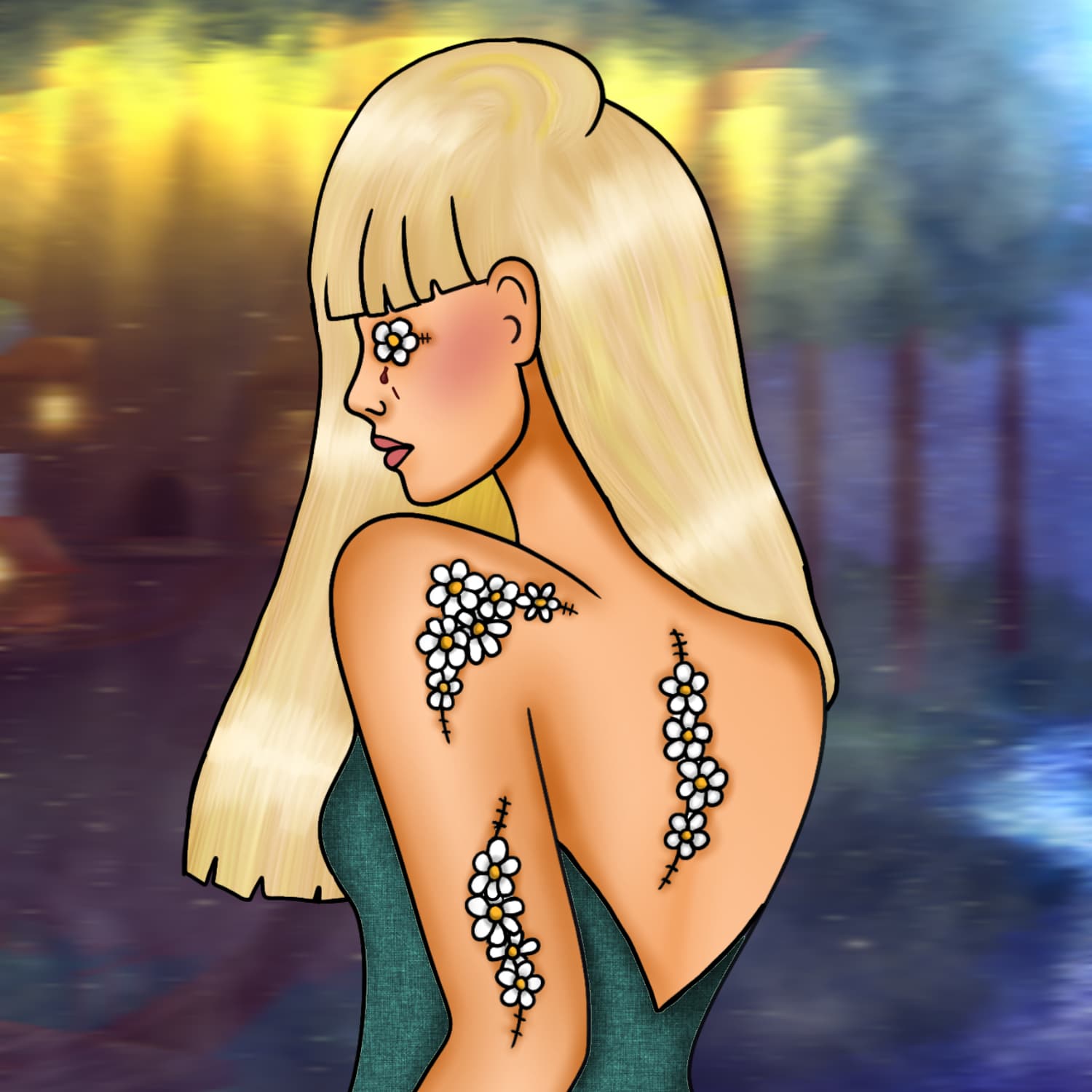 Okay yeah it turned out weird but somehow I do not hate it? I kept it quite simple with the colouring and stuff but I think it works for this concept. Also no I didn’t make the background myself, I just lightly edited a ibis paint one