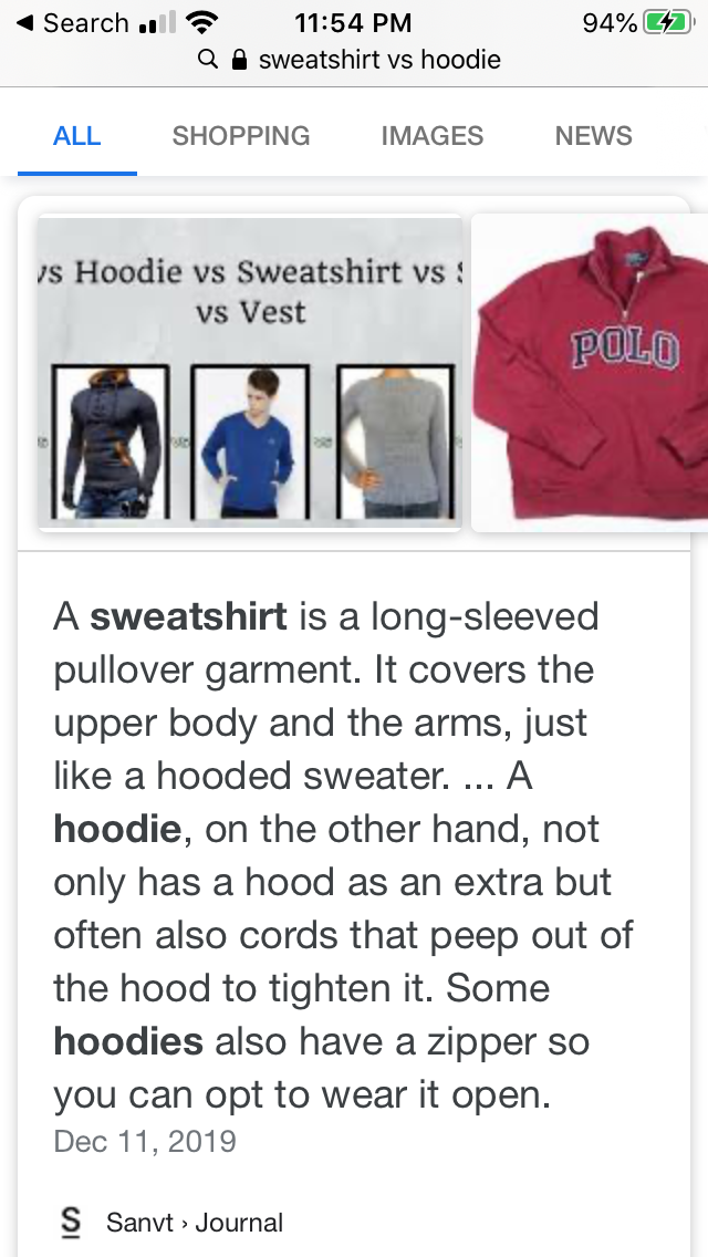 I donāt own a sweatshirt. T-shirts with a jacket.